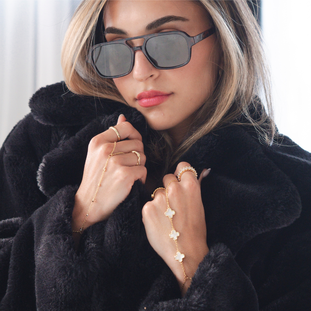 Feel lucky and stylish with our Feeling Lucky Hand Chain! This hand chain features 3 clover charms. adding a touch of luck to your look. Enhance any outfit with this unique and eye-catching accessory.