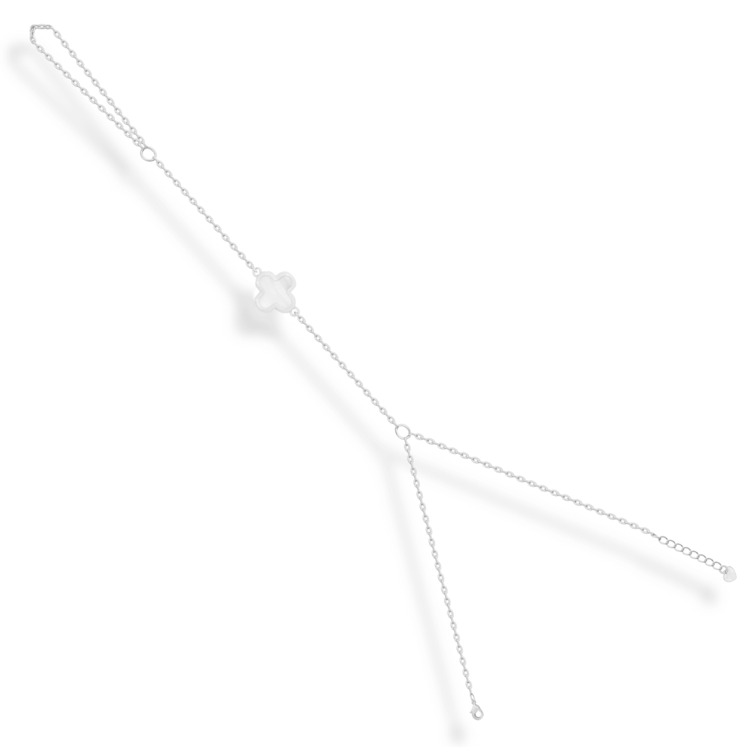 The Lucky Hand Chain will bring you good fortune with its beautiful clover charm. This hand chain is a stylish and unique accessory that is perfect for any occasion. Let it be your lucky charm and add a touch of luck to your everyday look!